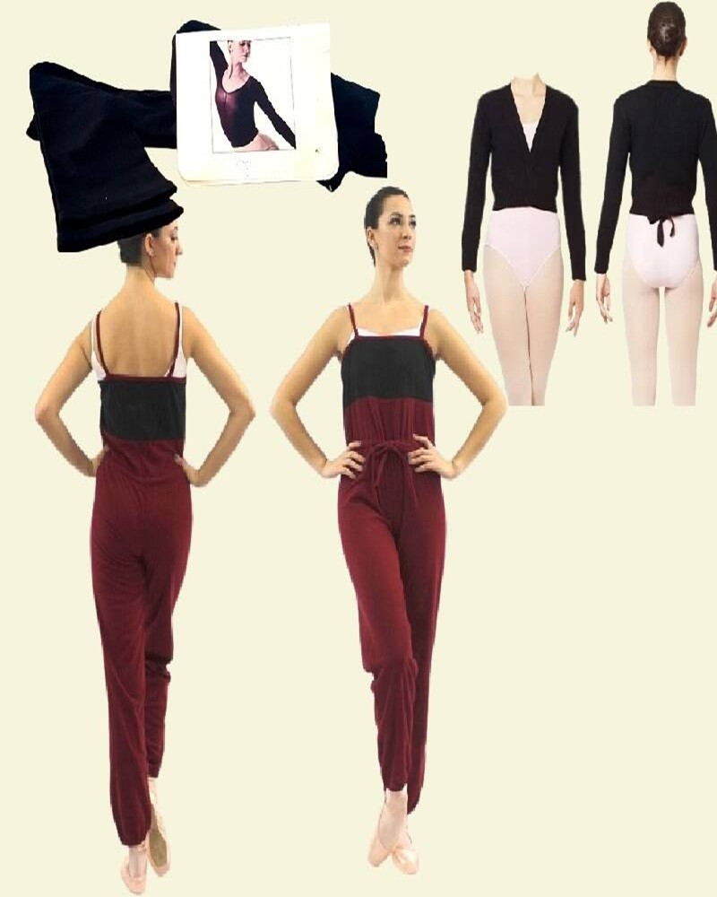 Enhance your dance classes with this premium thermal pack: warm fleece jumpsuit, high-quality wool cardigan, and tights.