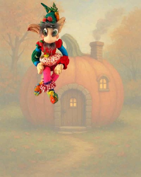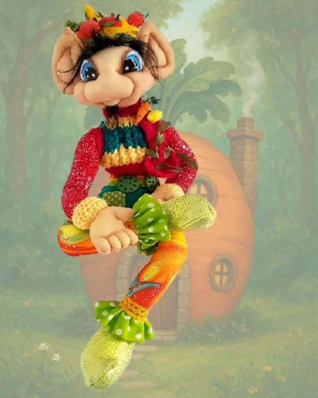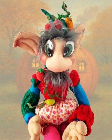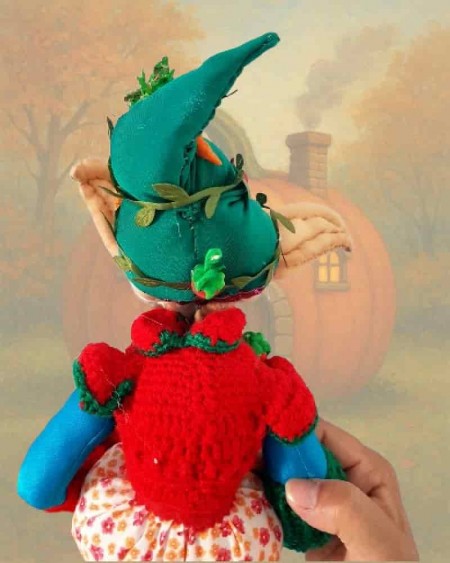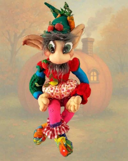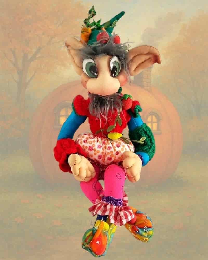 Handmade, with a decorated hat and embroidered shoes, full of magical spirit.