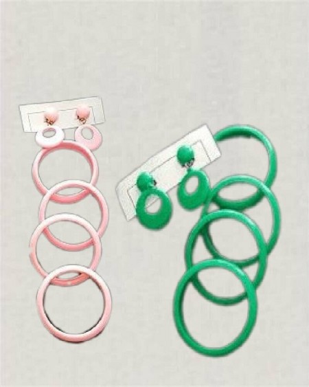 Hoop Earrings: one pair in pink, one pair in billiard green