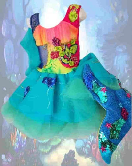 Sofisticada sirenita, montada en un body con decoración artesanal.